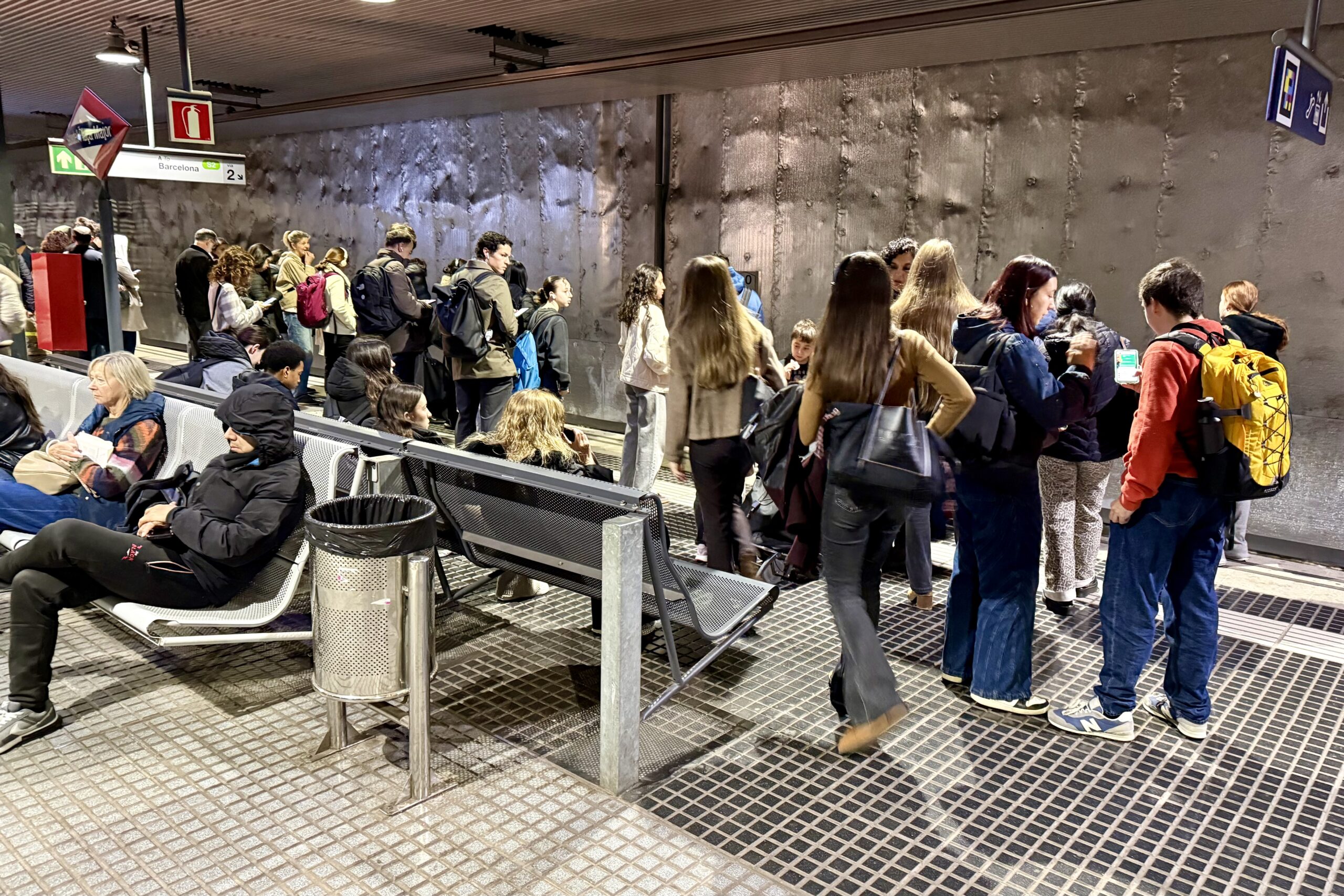 A l’estació de Sabadell Plaça Major, entre dos quarts de vuit i les 9 del matí els trens han anat arribant de forma irregular. En alguns moments venien en direcció Barcelona amb diferències de tres a cinc minuts, com en un dia ordinari, i en d’altres cada 10 minuts o més, moments en els quals l’andana s’omplia de viatgers que, en alguns casos, no han pogut pujar als combois perquè anaven plens.