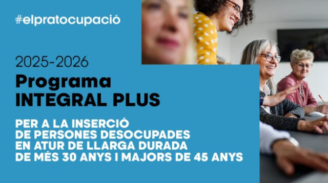 El Programa Integral Plus, iniciativa que compta amb finançament del Servei Públic d’Ocupació de Catalunya i del Ministeri d’Ocupació i Seguretat Social, té com objectiu facilitar la inserció laboral de persones en situació vulnerable.