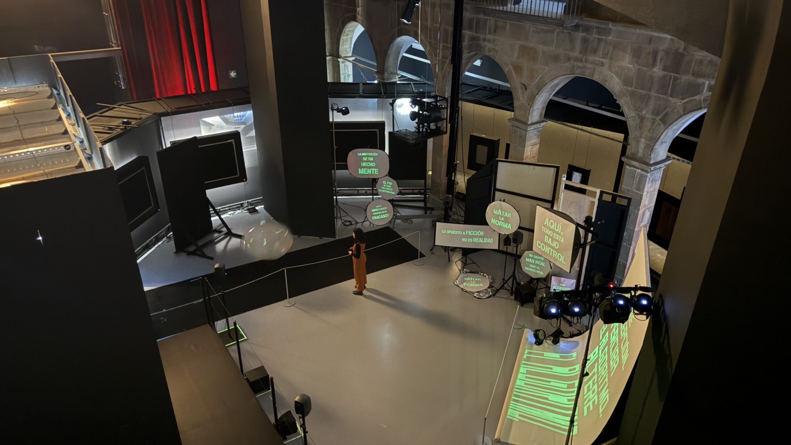 L’obra de Xesca Salvà és l’encarregada de donar la benvinguda als visitants, que només d’entrar es troben amb un gran teló i unes butaques. L’artista apunta a l’ACN que la peça gira al voltant de la idea d’autòmat en forma de “cortina que fa coses” i que convida els visitants a endinsar-se en la proposta “a poc a poc”.