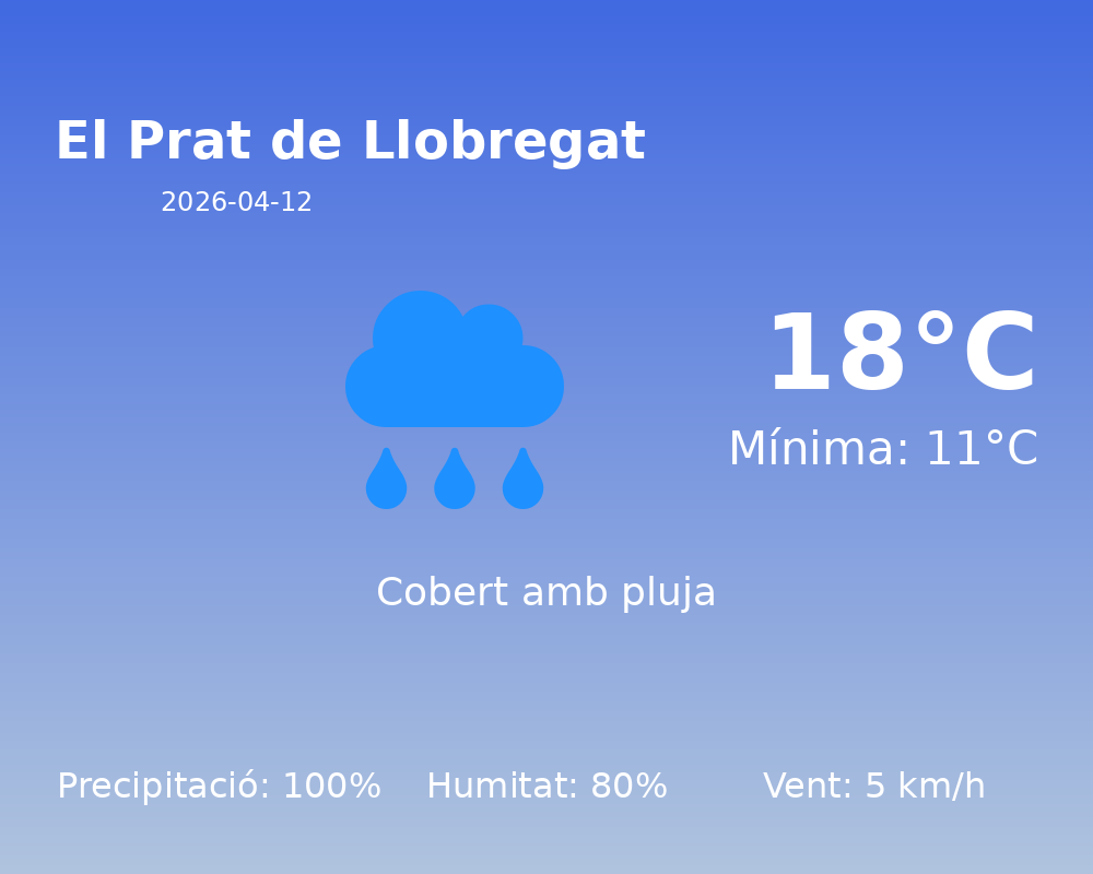 En resum, avui a El Prat de Llobregat, prepareu-vos per afrontar un dia marcat per la pluja i les temperatures suaus. Recordeu de prendre precaucions si heu de realitzar activitats a l’aire lliure!