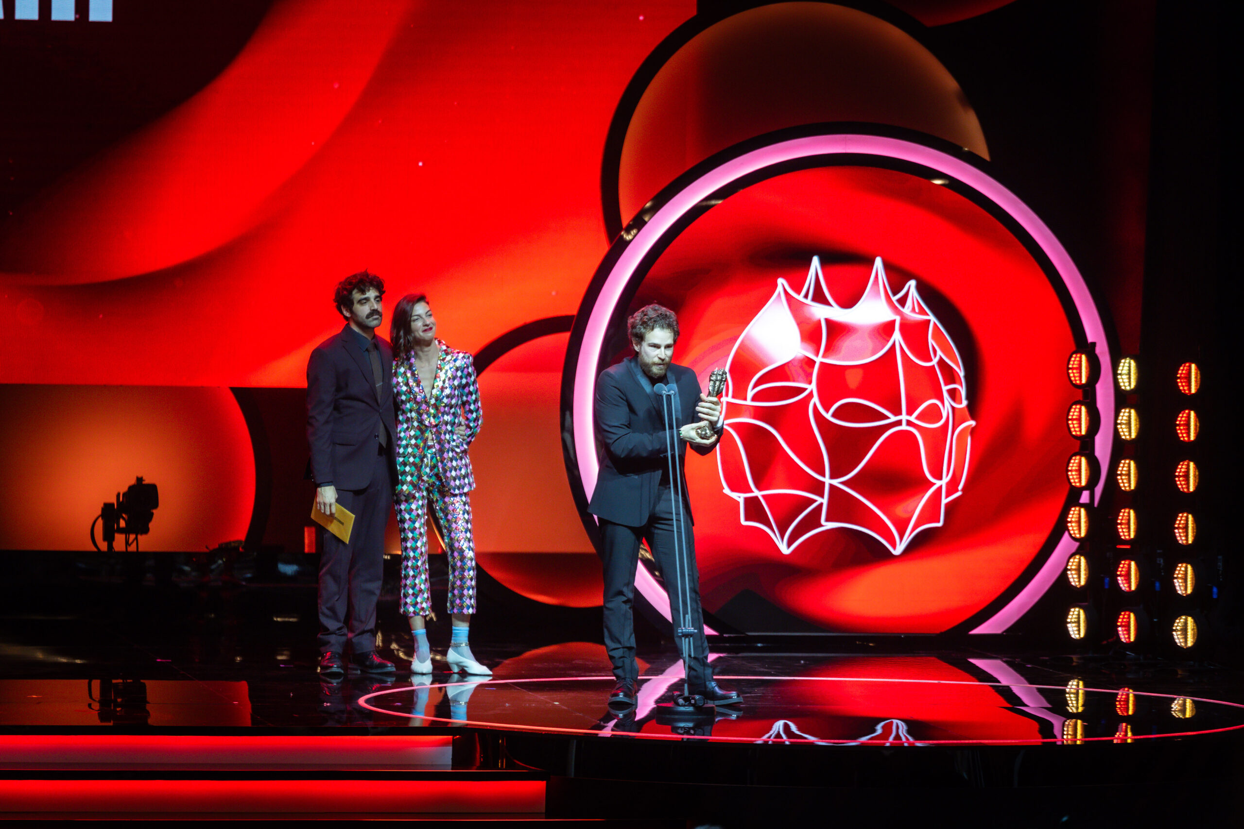 ‘Frontera’ ha compartit protagonisme amb ‘Sirât’, el film d’Oliver Laxe -que no ha pogut ser a la gala perquè està de campanya promocional als Estats Units pels Oscar-, un film que està fent fortuna des de la seva presentació oficial al Festival de Canes, d’on va marxar esperonat pel Premi del Jurat. La coproducció catalana ha fet bons els pronòstics i ha pujat fins a vuit vegades a l’escenari del Liceu per recollir el Gaudí a millor film en llengua no català, a més del de millor direcció de producció, direcció artística, música, fotografia, so, efectes visuals i maquillatge i perruqueria.