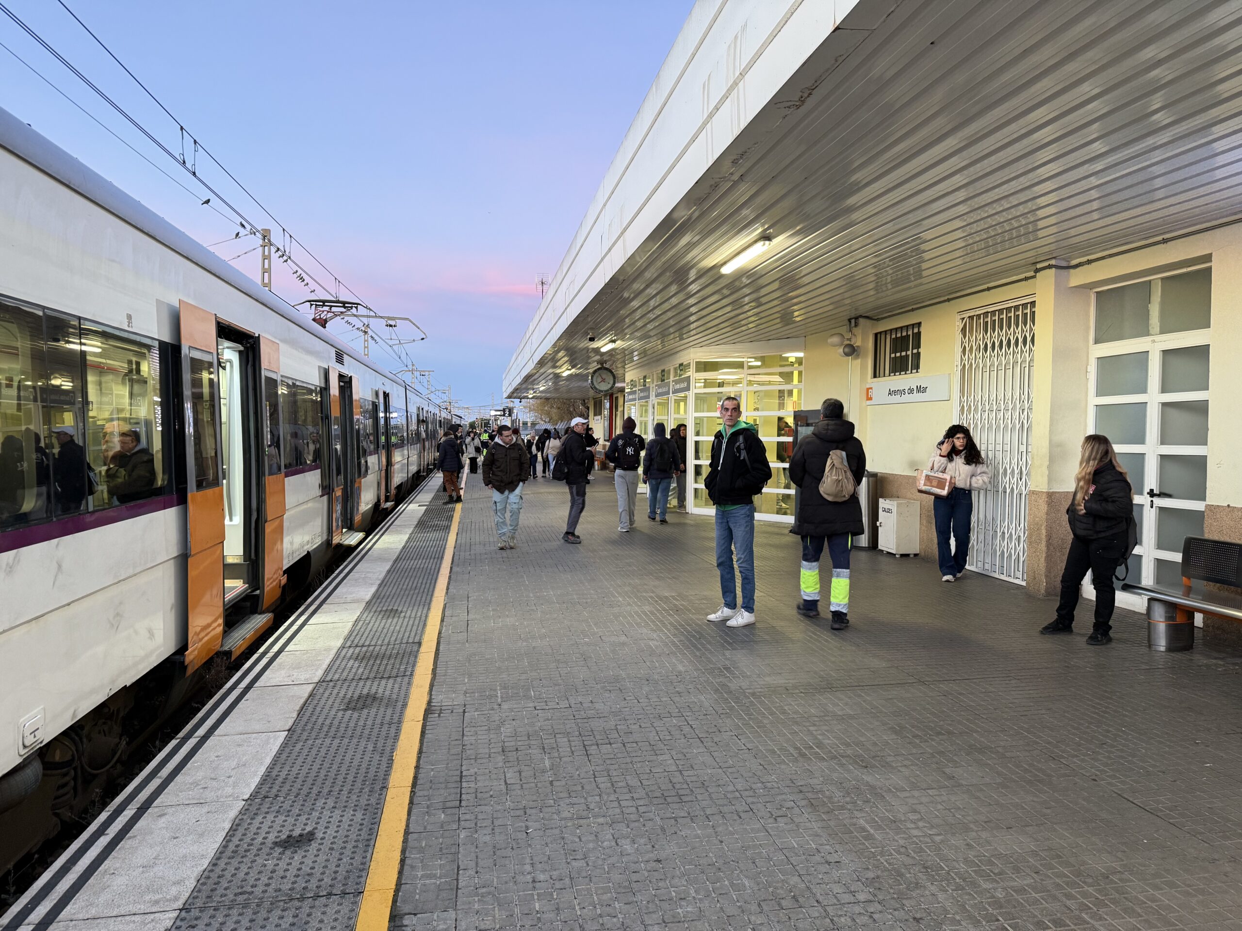 ACN Arenys de Mar – Els nervis i les corredisses han tornat a ser els protagonistes aquest dimecres al matí a l’estació d’Arenys de Mar de l’R1. La reobertura del tram fins a Blanes quan passaven pocs minuts de les 7 del matí ha obligat el personal de l’estació a desdoblar-se per informar els viatgers que, confosos, no sabien de quina andana sortia el seu tren per anar a Barcelona o si per anar a Blanes havien d’agafar el tren o un dels autobusos habilitats que continuaven aparcats a l’exterior. Tot i que inicialment s’ha informat que els busos deixaven de funcionar i que s’havia d’agafar el tren, finalment s’ha optat per seguir fent viatges a Blanes per carretera. “Estem perduts”, lamentava el David buscant el seu tren en direcció nord.