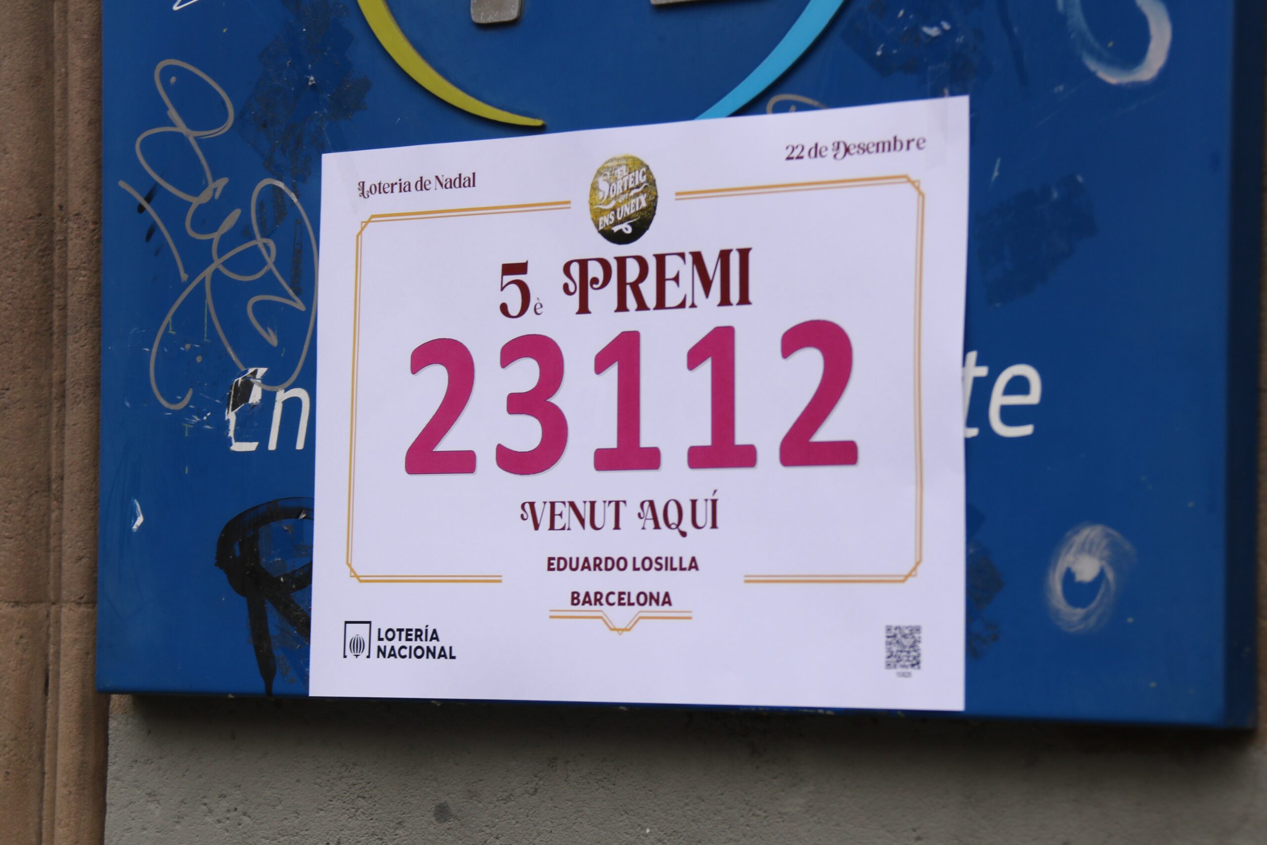 ACN Barcelona - Un dels tres cinquens premis de la Grossa de Cap d’Any, el…