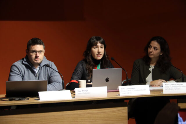 ACN Barcelona – Sis persones s’han querellat contra els Mossos d’Esquadra per l’ús “indegut” de gas pebre durant la vaga per Palestina el 15 d’octubre. Els denunciants són manifestants, representants sindicals i professionals de la comunicació, representats per una coordinació jurídica formada per Alerta Solidària, Irídia, la CGT, la Intersindical i la IAC. Els fets van tenir lloc a l’estació de Sants de Barcelona, on des de la Coalició Prou Complicitat amb Palestina han explicat que, pocs minuts després d’iniciar-se una sentada pacífica davant l’hotel on s’allotjava un equip israelià de bàsquet, els mossos van començar una càrrega i fan fer ús “reiterat” de gas pebre “directament a la cara, i sense cap avís previ”.
