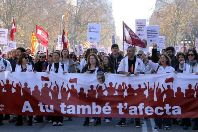 En Xavier, pediatre, ha reivindicat que cal que els metges tinguin un conveni propi que reculli “totes les singularitats” dels facultatius, mentre en Víctor, que fa urgències de pediatria, ha remarcat que la mobilització és especialment per les condicions laborals perquè tenen “guàrdies extenuants” i treballen amb “material sensible com són els pacients”. “Quan estàs ja mort de son, el teu cervell l’únic que pensa és que no cometis cap error”, ha assenyalat.